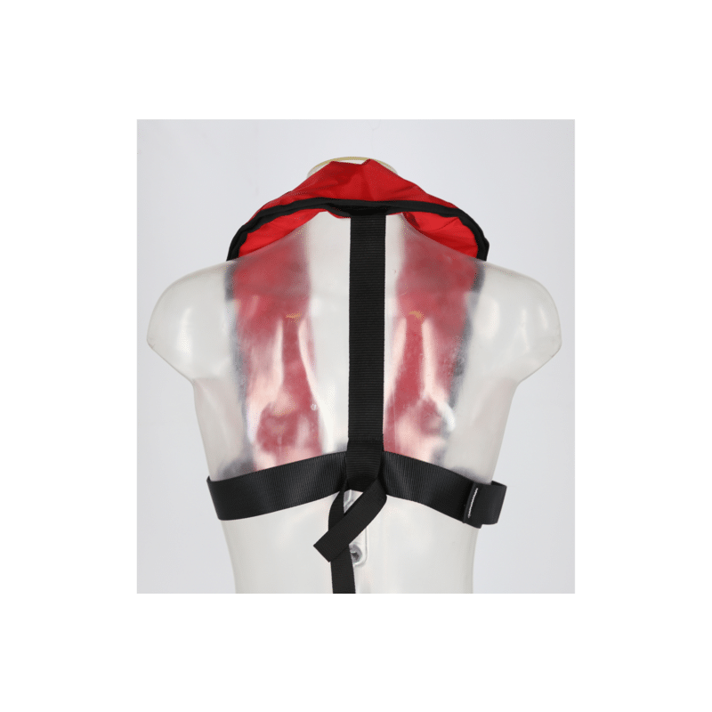 Aufblasbare Rettungsweste mit manueller und automatischer Auslösung (UML-5), Schrittgurt (abnehmbar), Lifebelt-Schlaufe, Edelstahl-Verschluß, 50-140cm Bauchumfang, 40-150kg, 165N, CE/UKCA Zertifizierung, Bedienungsanleitung (mehrsprachig) in PE-Verpackung